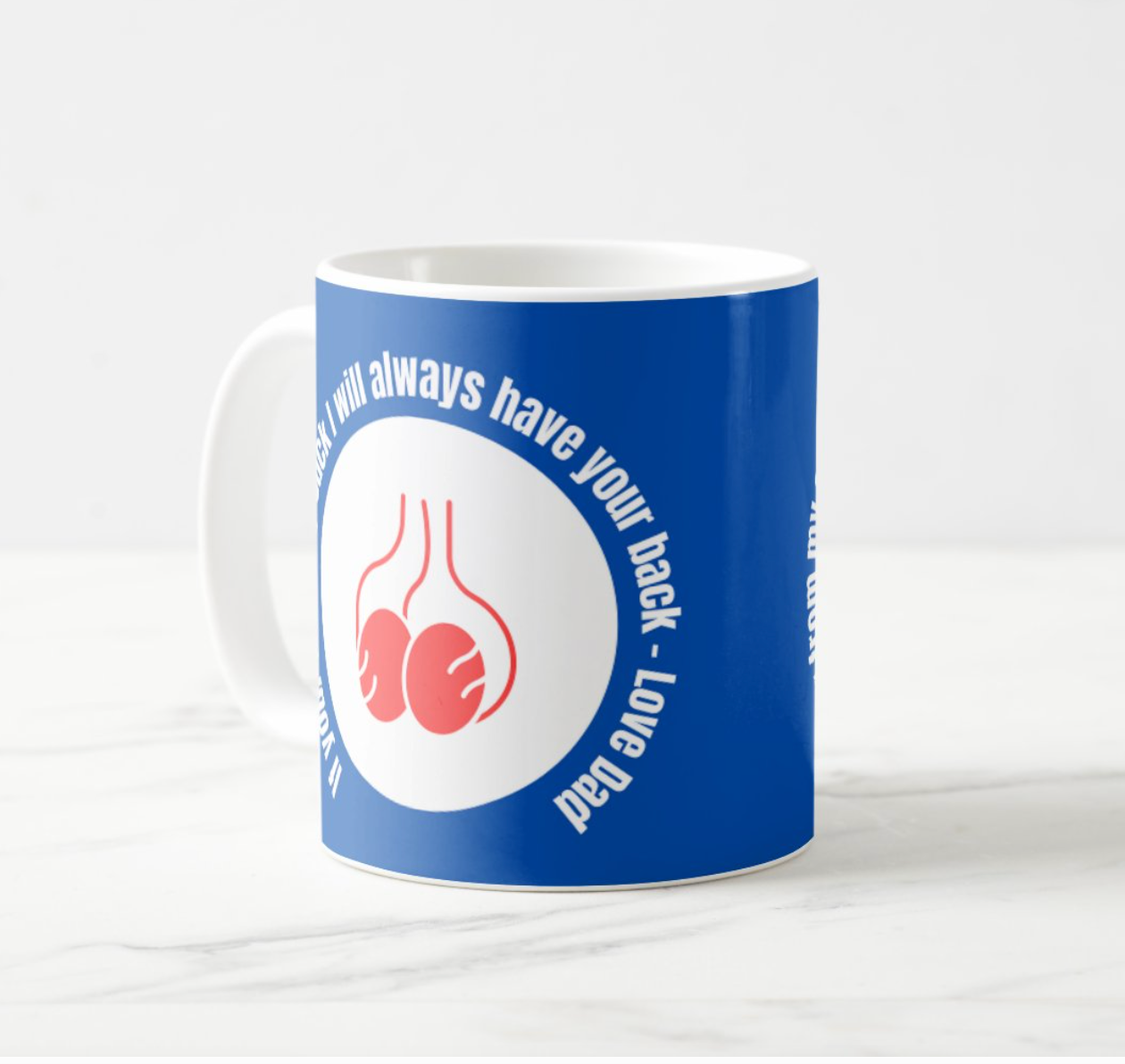 Whether you're late-night cramming, morning groggy, or just avoiding adulting, this mug is here to remind you that Dad’s support is always just a sip away. Perfect for anyone who inherited Dad's humor, wit, and, of course, a lifetime supply of unconditional love. Because if you came from his sack, he’s always got your back